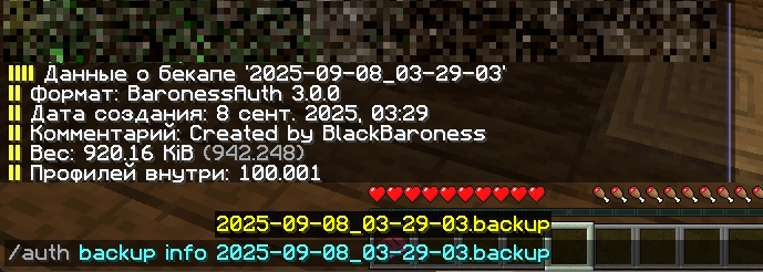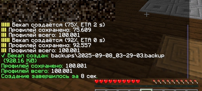 - Поддерживает метаданные файла-бекапа: дата создания, комментарий, количество игроков внутри и так далее.
